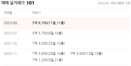 40평(101) - 매매 6.7~7억, 전세 4~4.5억