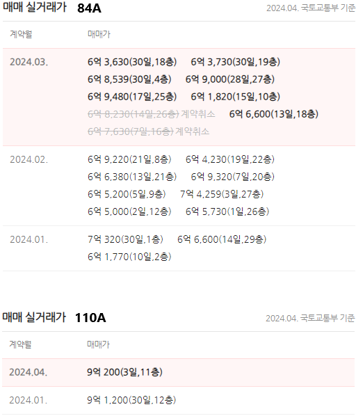 33~34평(84) - 매매 6~7.79억, 전세 3~5.5억
