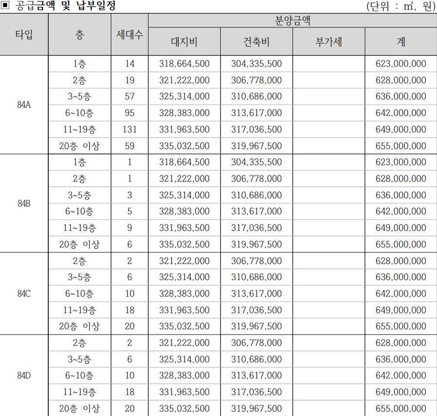 84B - 분양가 623,000,000~655,000,000원 + 확장비 30,000,000원