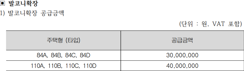 84C - 분양가 628,000,000~655,000,000원 + 확장비 30,000,000원