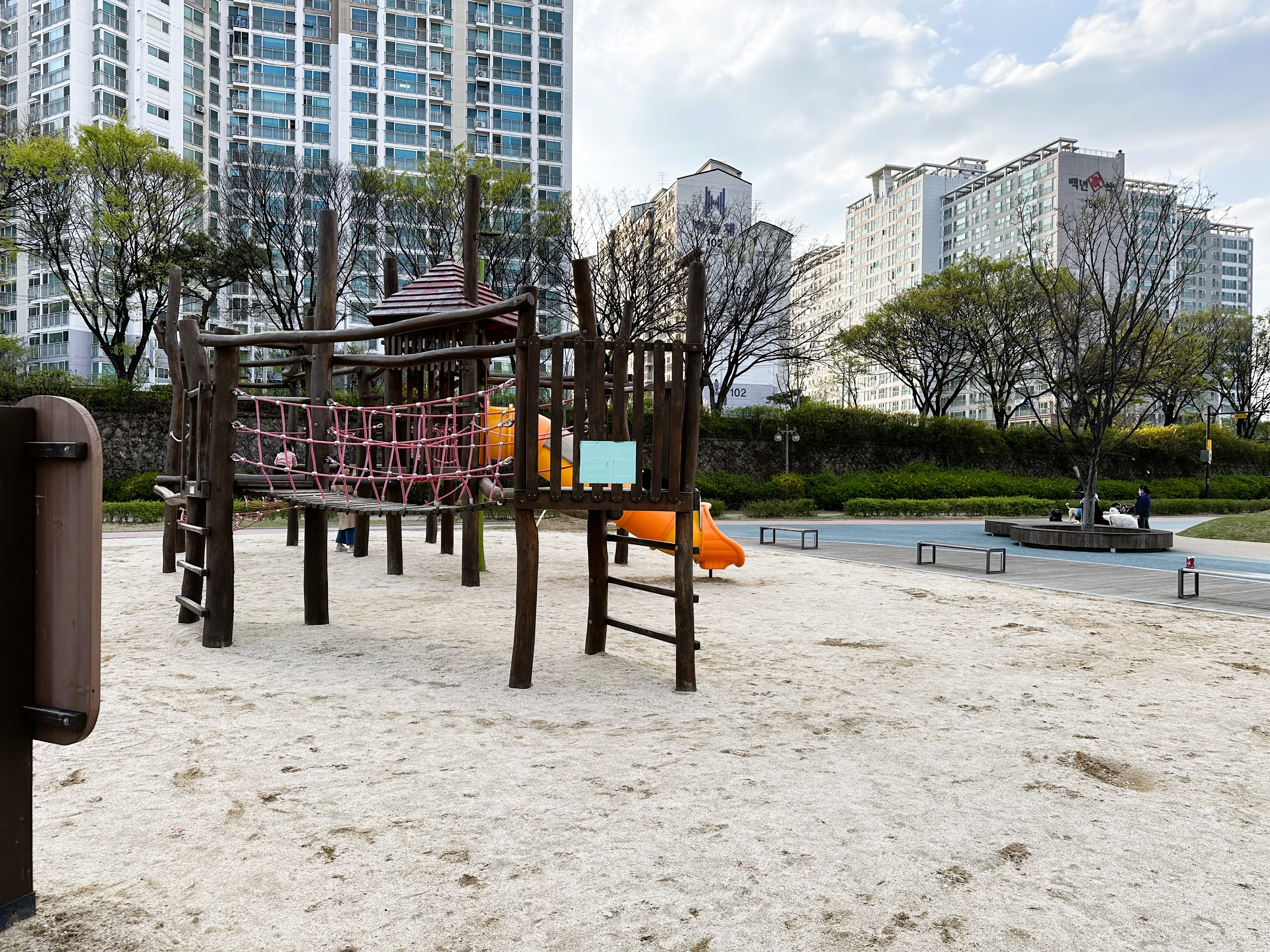신천 프로젝트 사업으로 2020년 술래잡이놀이터가 조성되어 무료로 운영 중입니다. 놀이터는 크게 조합놀이대, 술래잡이언덕, 공중놀이기구의 총 3군데로 나뉘어 있고 미끄럼틀, 그네, 시소, 짚라인, 클라이밍, 흔들말, 줄타기, 모래장, 운동기구 등 여러 시설이 있어 남녀노소 모두가 즐길 수 있습니다. 부대시설로 쉼터, 에어건, 수돗가, 화장실 등이 있습니다.