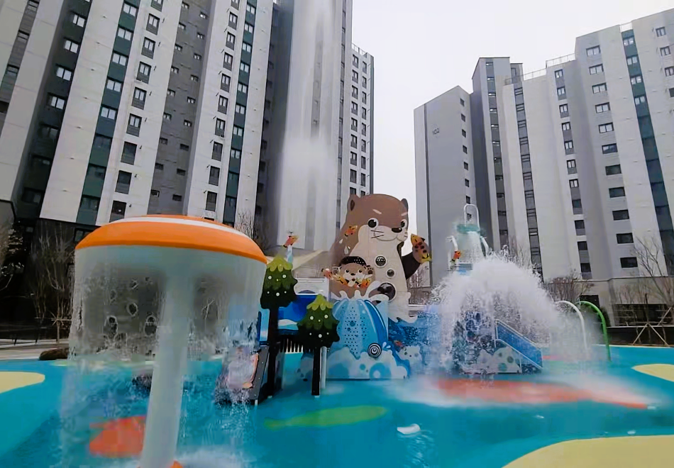 수성푸르지오리버센트는 중동에서 유일하게 물놀이터가 있는 아파트입니다. 신천둔치의 마스코트 수달을 모티브로 한 물놀이터가 상당히 귀엽습니다. 다른 놀이터에는 짚라인도 갖추고 있어 아이들이 상당히 좋아할 것 같습니다.