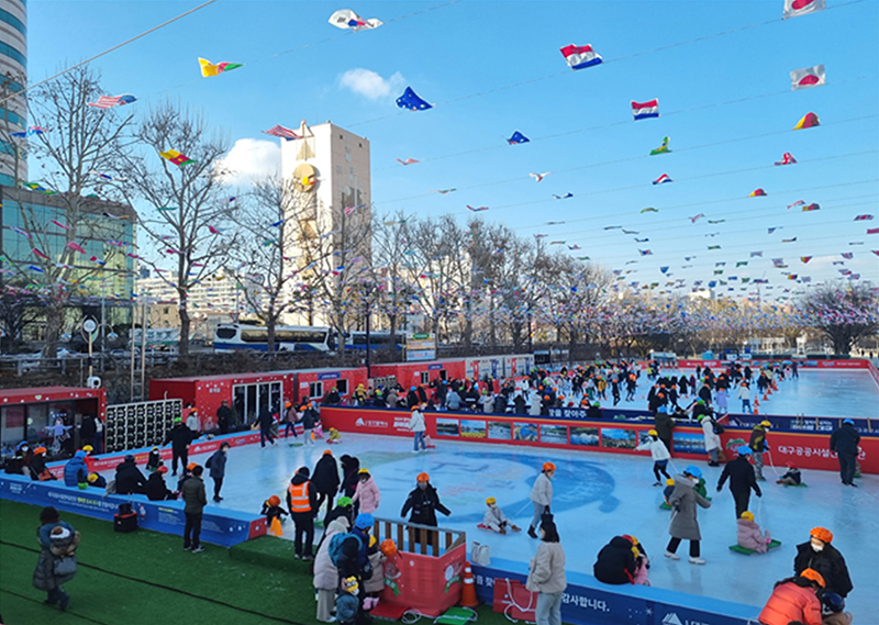 신천 야외 스케이트장은 신천 대봉교 하류(대구백화점 프라자점 앞)에 매년 개장하여 운영되고 있습니다. 2023년 기준 스케이트존 1,320㎡(399.3평), 민속썰매장 286㎡(86.5평)과 편의시설인 고객 휴게실, 의무실, 매점 등 총면적 3,360㎡(1,016평) 규모(2023년 기준)로 조성돼 2023년 12월 16일부터 2024년 1월 28일까지 44일 간 운영 된 바 있습니다.