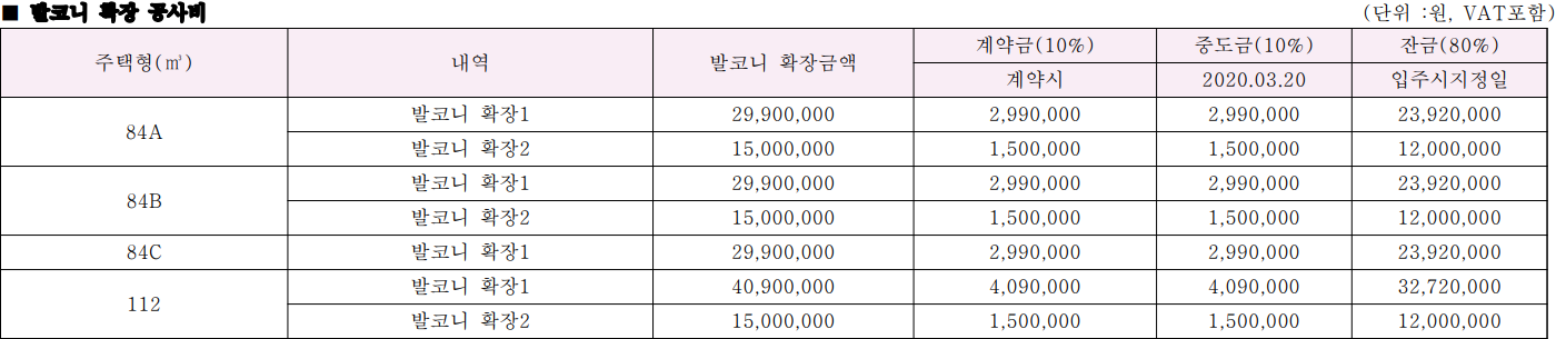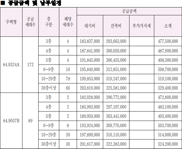 84B - 분양가 472,800,000~524,000,000원 + 확장비(3면) 44,900,000원