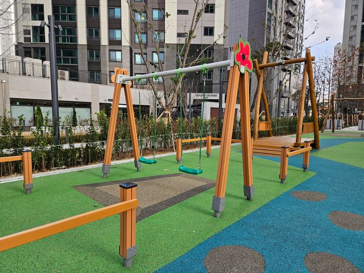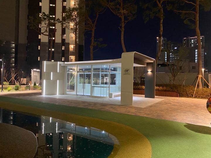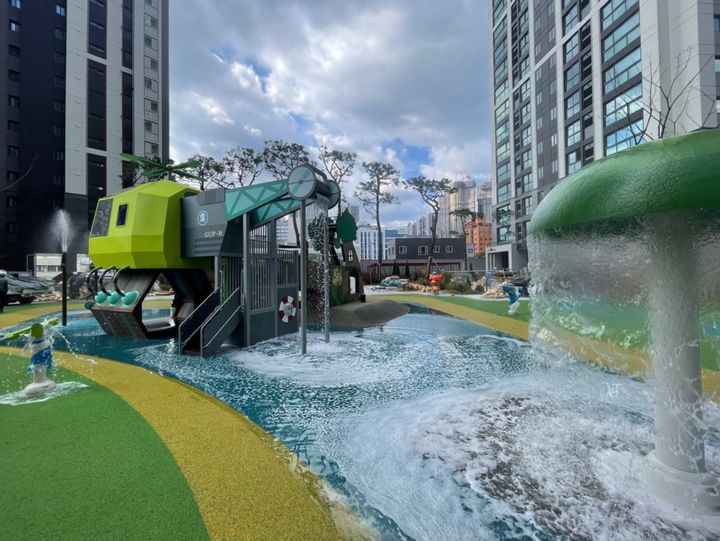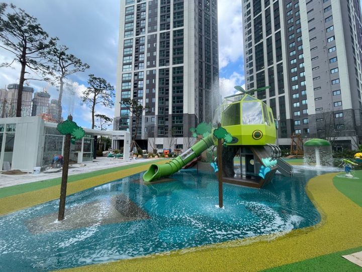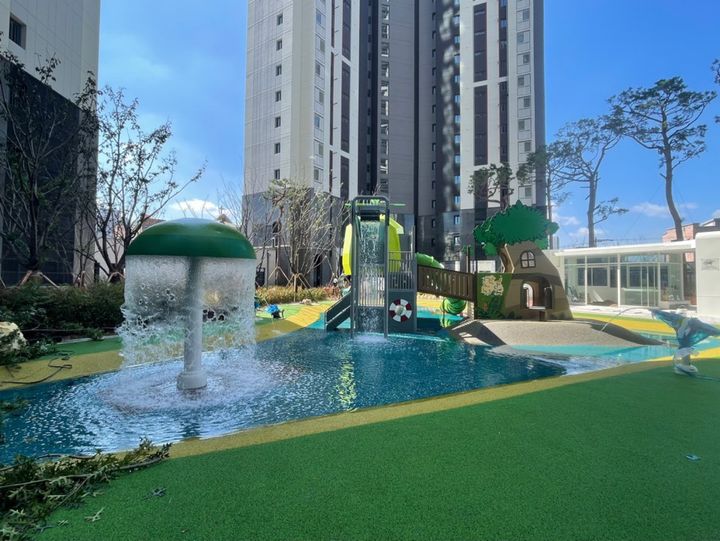 최근 신축에서 선호되는 시설인 물놀이터를 갖추고 있습니다. 어린 자녀가 있는 세대에서는 반기는 시설입니다. 대지면적이 좁은 주상복합 특성상 부대시설 등 공용시설을 조성할 공간이 부족했을 텐데 입예협의 노력이 대단한 것 같습니다.