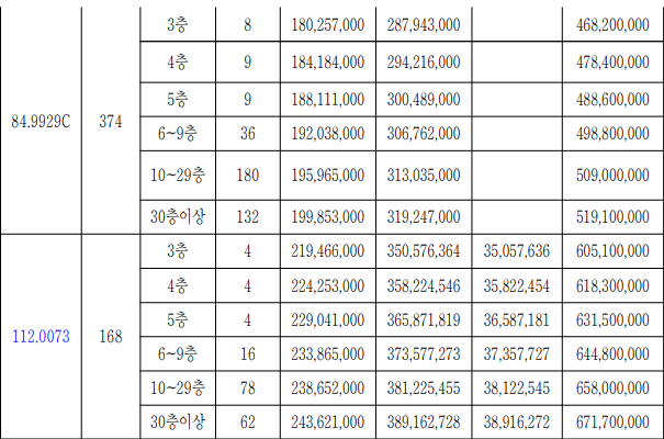 112 - 분양가 605,100,000~671,100,000원 + 확장비(3면) 55,900,000원