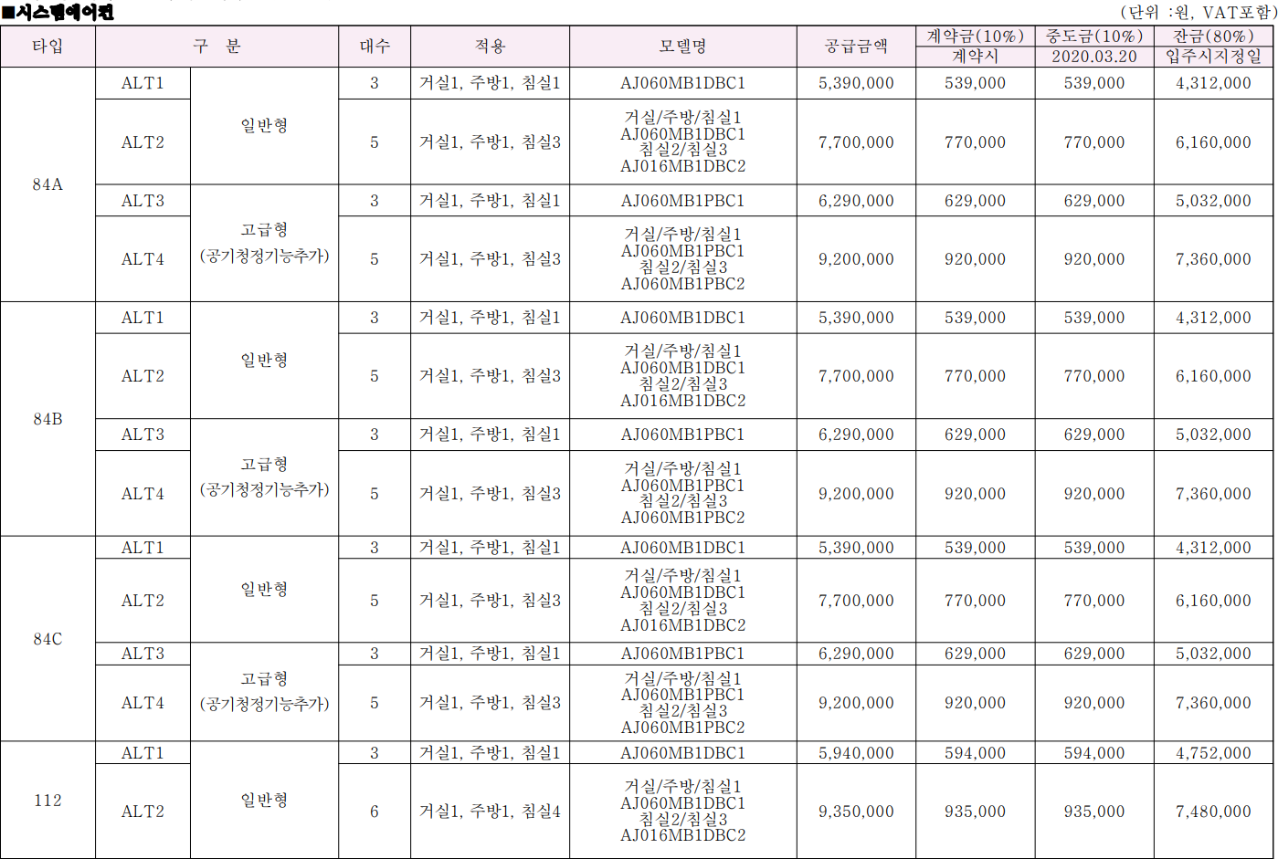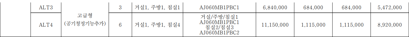 분양가, 확장비 외에 시스템 에어컨과 가전, 인테리어 옵션 등이 있습니다.