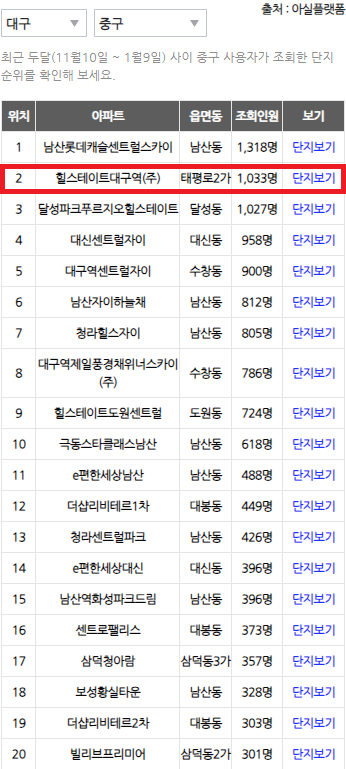특히 힐스테이트대구역은 태평로 대장이라 불릴 정도로 그 입지나 상품성이 뛰어난 아파트입니다.